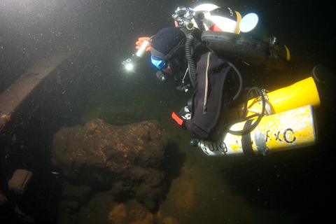 A target resembling a shipwreck was discovered during the Finnish Maritime Administration’s routine seabed surveys in the Gulf of Finland in 2003. Originally the finding was suspected to be a merchant vessel with limited significance, but the initial underwater documentation undertaken by Finnish wreck research team Badewanne revealed that the discovery was much more interesting than originally thought. The wreck site has been documented by Badewanne since summer 2004, with a research permit from the Finnish National Board of Antiquities. Mixed gas diving techniques, involving breathing of helium-oxygen mixtures, have been used in the work due to depth in excess of 60 meters at the wreck site. The wreck site has been documented using digital still and video cameras, and the research results are slowly lifting the curtain of secrecy covering the mystery wreck.